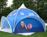 Für einen aufmerksamkeitsstarken Auftritt: Mit diesem Domzelt heben Sie sich garantiert von den Faltzelten Ihrer Mitbewerber ab: Die ausgefallene Form und die attraktive Optik dieser Open Air Pavillons sind innovativ und modern. Dabei sind diese PopUp Dom-Zelte so einfach aufzubauen wie jedes andere Faltzelt oder Pavillon auch: mit wenigen Handgriffen und in kürzester Zeit ist Ihr Werbezelt einsatzbereit! Mit einem innovativen Domzelt wird Ihre Veranstaltung oder Ihr Messestand gleichzeitig zum professionellen Werbeauftritt für Ihr Unternehmen.