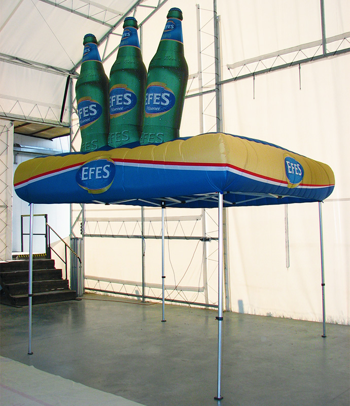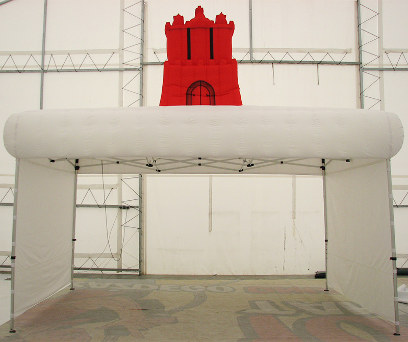 Mit den 3D-Faltzelten eröffnen sich Ihnen ganz neue Dimensionen der Werbung mit Faltpavillons: Nicht nur ein plakativer, vierfarbiger Druck wird Ihnen bei diesen 3D-Zelten geboten: Sie haben hier sogar die Möglichkeit, dreidimensionale Figuren und Körper zu integrieren, die dann mittels eines Gebläsemotors ihre Form erhalten! Den Möglichkeiten sind hier keine Grenzen gesetzt: Wir realisieren Ihre Wunschform ganz individuell für Sie!